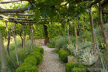 Ms Jeannie is in love with the rustic pergola above. She has spent many a daydream trying to incorporate something similar into her own garden plan. At Venzano, it is used to shelter the herb garden.