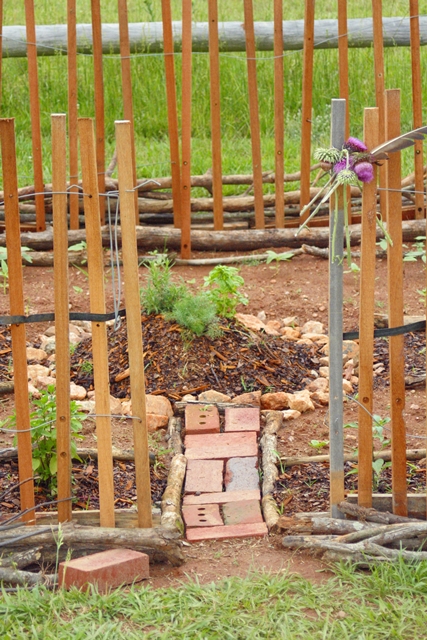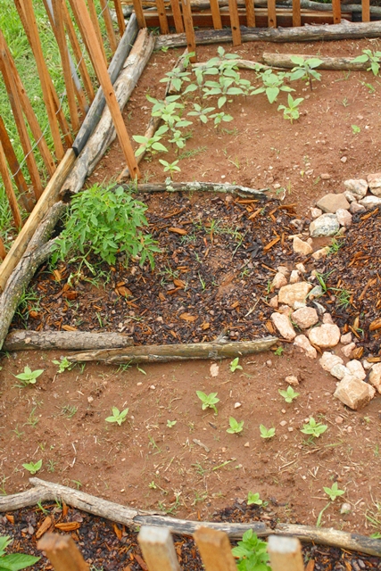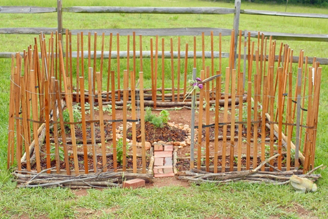 Do you remember Ms. Jeannie’s other garden patch project? The one that involved the hard to make, impractical but so so beautiful twig fencing? Well, Ms Jeannie discovered that yes indeed – it is definietly hard to make a twig fence. Hats off to all of you that have the paitence to muddle through such construction.