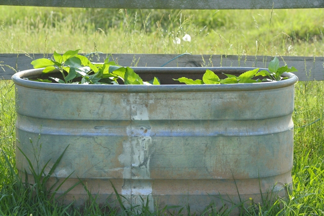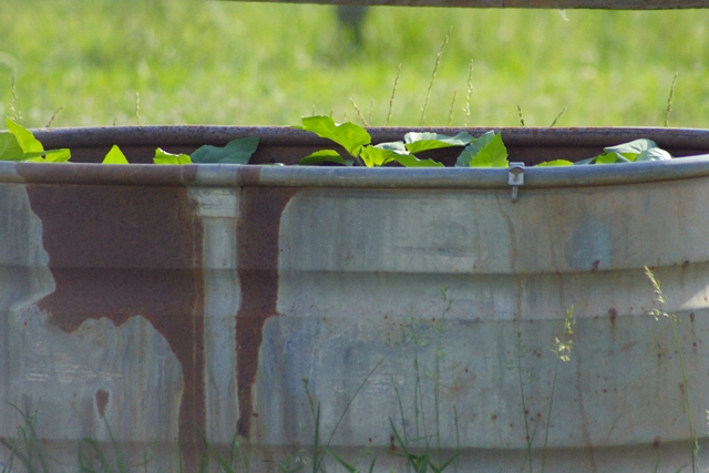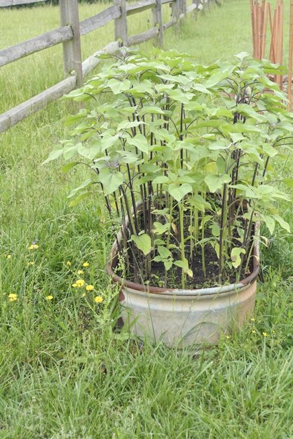 Besides the bin of three feet tall sunflowers, Ms. Jeannie also has two other water troughs full of sunflowers. They were planted a couple of weeks later then the initial batch of sunflowers to help stagger the bloom time, so they are just getting their soil legs now, so to say. This morning they were just peeking over the rims of the troughs.