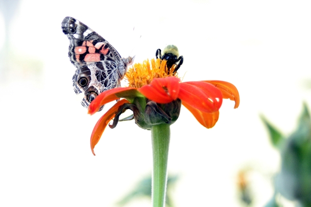 It is interesting to watch the bees interact with the butterflies. They sort of kick the butterflies out of the way so that they can dive deeper into the nectar. Ms. Jeannie doesn’t think the serving staff at IHOP would approve of that behavior.