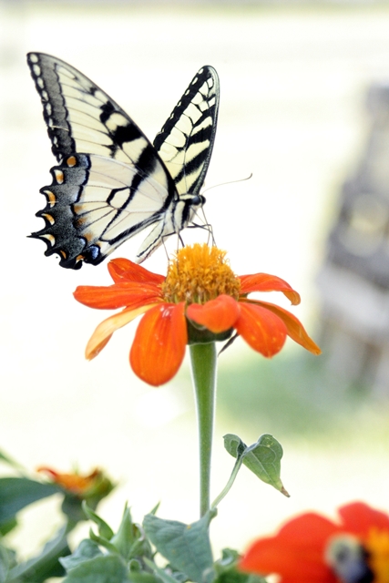 The bees, the birds, the butterflies were all abuzz! So much so that they were literally flying into Ms. Jeannie as she stood watering her Mexican Sunflowers. They couldn’t wait to get by her, diving down, flying up, brushing against – it was a veritable feeding frenzy! The petals were open! Breakfast was on!