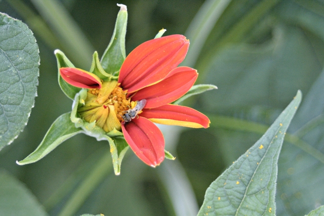 Considered weeds in Mexico and South American countries, Mexican sunflowers are really easy to grow. Requiring little water and lots of sun, it is best to plant them in the hottest driest place in your garden. Ms. Jeannie only waters hers every few days, as too much water, yields lots of green leaves but not a lot of flowers.