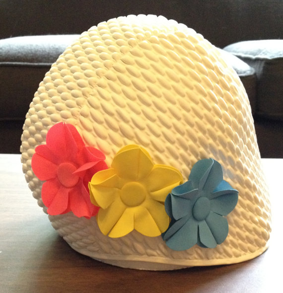 The 1950’s and 60’s brought about more colorful, stylized swim caps adorned with flowers and frillies like these…