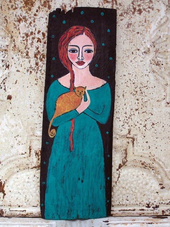 Cats – yes most definitely. Tuny might just be one of the biggest collectors of cat art that Ms. Jeannie knows. Specifically she loves cat folk art, which Ms. Jeannie can understand since she is a big folk art lover herself!