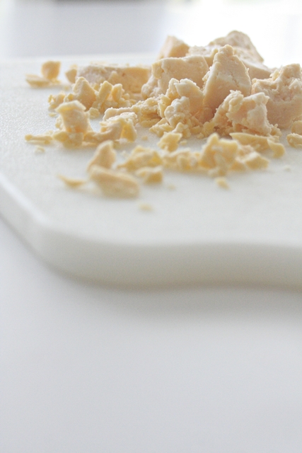 Hailing from Cheshire County in North West, England, as it turns out, Cheshire cheese is one of the oldest cheeses in Britain. It’s crumbly, dense, ultra-firm texture was created purposefully, so that the cheese would remain intact while being transported to market in wagons and carriages. Aha!