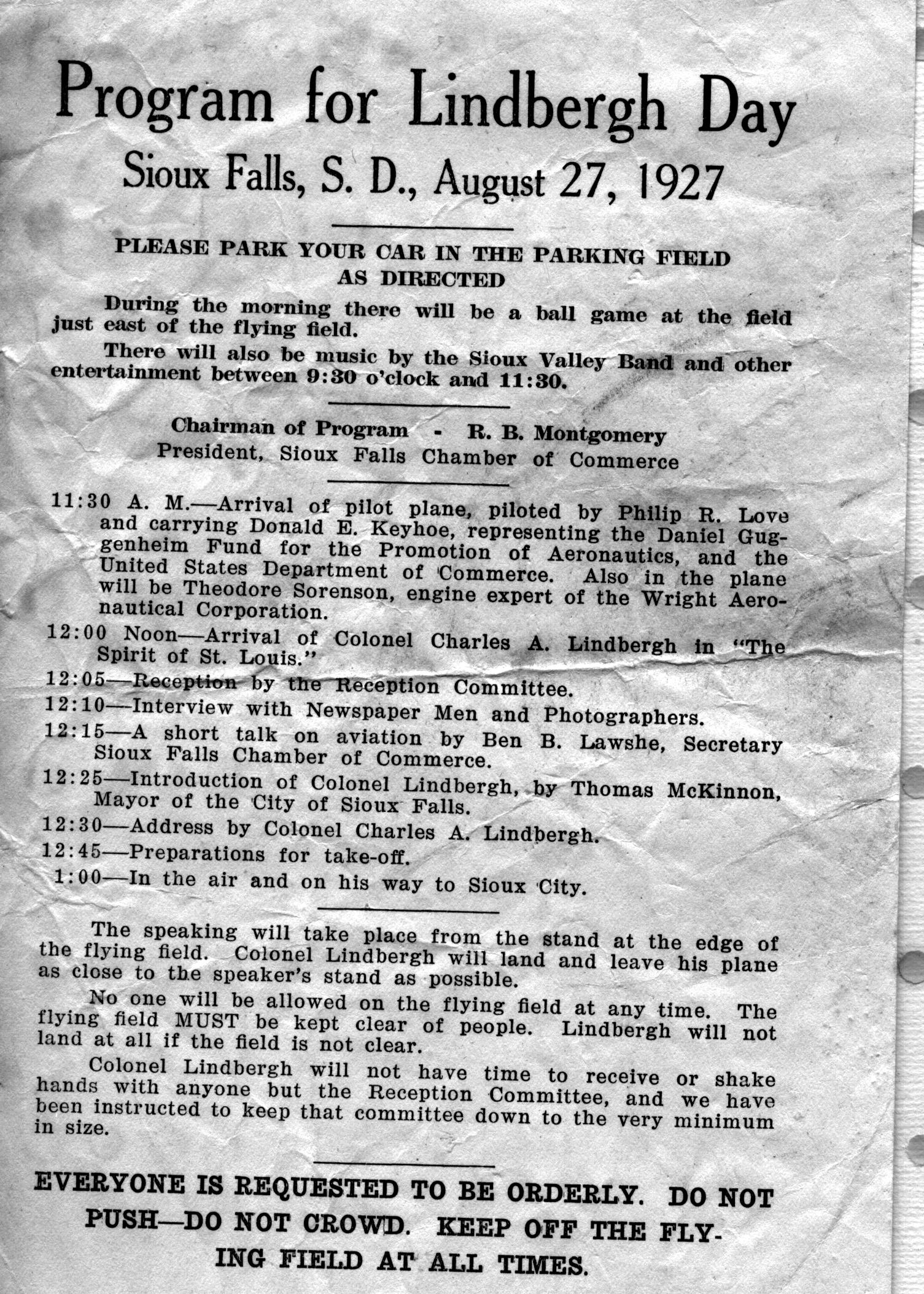 Lindbergh Day in Sioux Falls, South Dakota – August 27, 1927