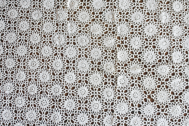 Now when Ms. Jeannie looks at this tablecloth she sees great reminders. She sees how one stitch leads to a circle, which leads to a flower, which leads to a pattern, which leads to a piece, which eventually leads to an entire tablecloth.