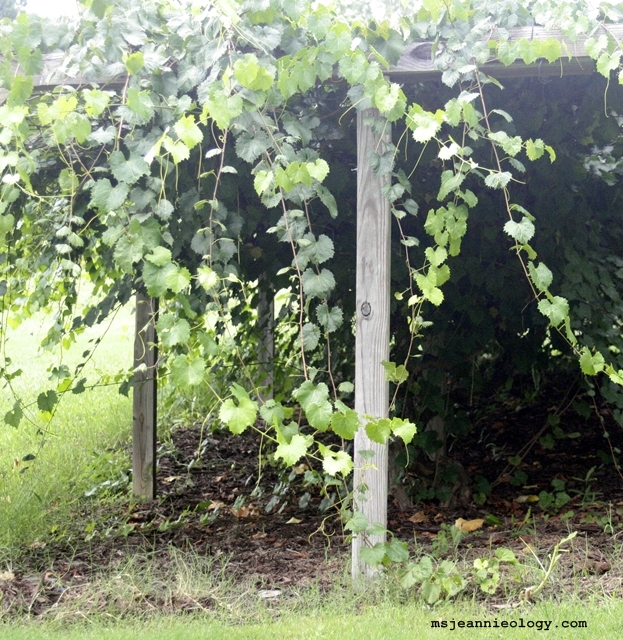 Wine in Georgia, you say? How could that be, Ms. Jeannie? Well, my dears, Georgia has actually been growing two unique types of grapes since the 1500’s  – the scuppernong and the muscadine grape. It is not uncommon to see little vineyards of two or three rows in people’s yards all over the south. Ms. Jeannie, herself has two rows of 35 foot vines herself. Here’s some pictures…