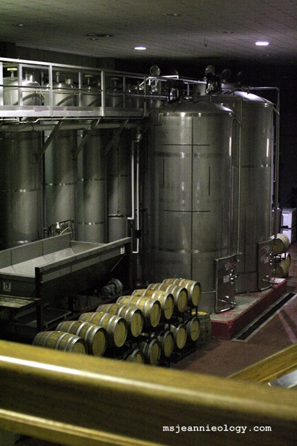 The winery tour starts inside the Chateau in the large gift shop area. On the tour, Ms. Jeannie learned about the production side of wine-making which included, of course, how it was stored, and bottled. It was a pretty industrial process and a long way away from stomping of the grapes that the statue represented – but it was interesting none the less.