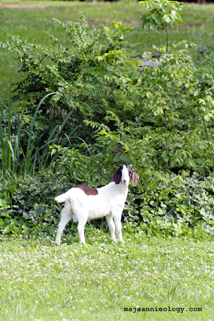 And that’s the moment when Ms. Jeannie learned that her Nymph and Nyle are actually named Billy Bob and Betty Boop. She also learned that they go bananas for Saltine crackers, that before the end of the year Nymph (aka Betty Boop) will be a mom and (thankfully), that these two are bound for breeding and not table food. So we can all rest assured on that point. Ms. Jeannie can hardly wait to see the little tiny baby goats these two produce!