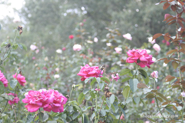 Ms. Jeannie was thinking about all this the other day when she finally (after many months of waylaid attempts) managed to visit the rose garden at Fernbank, Atlanta’s natural history museum.