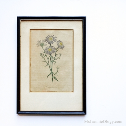 A beautiful 9.5″ inch x 13.5″ inch vintage framed botanical print in all its elegant shades of beige, black, lavender and green comes to the vintage home decor section of the shop. Botanical prints are one of the prettiest ways to showcase your love of flowers. Especially in winter when it becomes difficult to remember what the summer landscape looked like buried under all that snow. This print works well in all seasons because it contains both light and dark colors and a natural, aged vignette which helps add a layer of warmth and dimension.