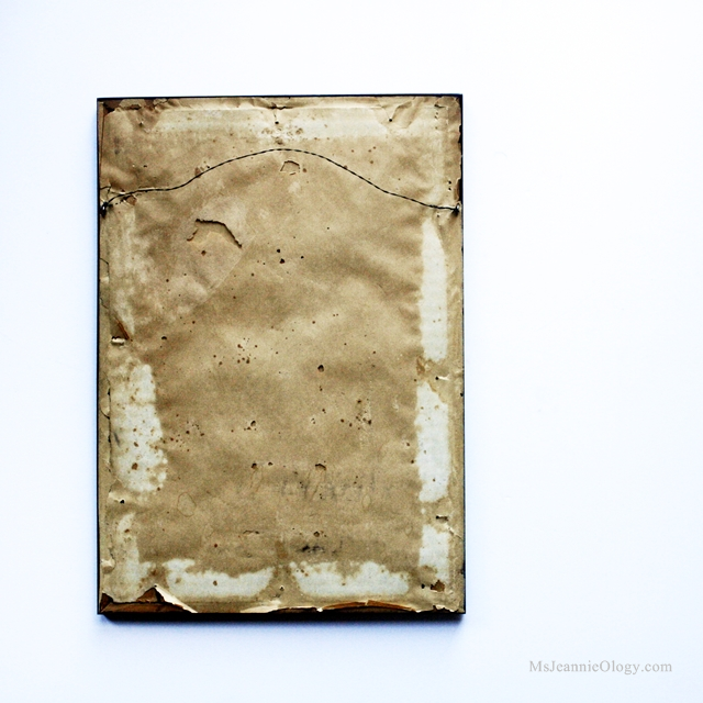 Call Ms. Jeannie crazy but she finds a lot of beauty in the backsides of antique art. Their subtle color shades, the thin delicate wire hangings, the marks of time and place…