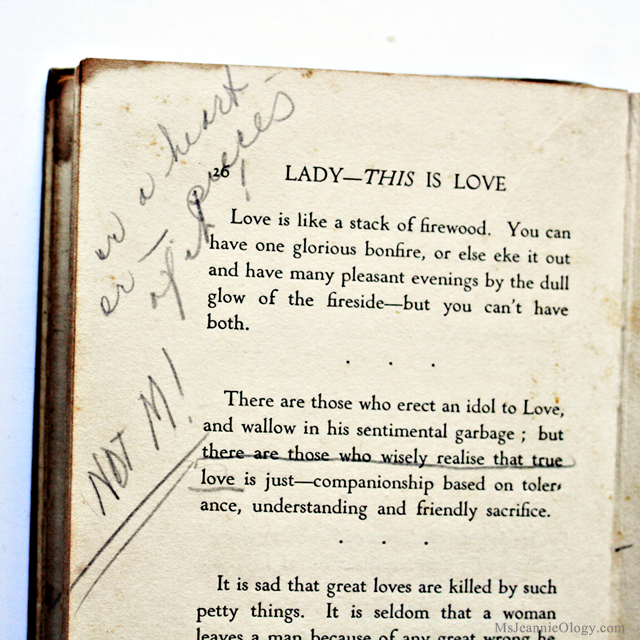 A rare first edition book published in 1930 looks at the humorous side of love from feminist author Irene Bueno de Mesquita. Great cover typography makes this a wonderful coffee table book or eye-catching wall art if you are so inclined to frame it. Interesting details include handwritten notes from a previous owner who has her own attitude on love…