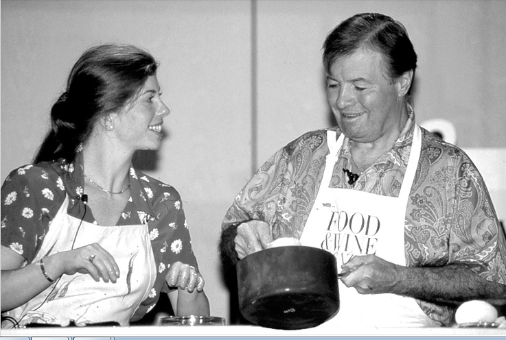 For her, techniques were troublesome, flavor pairings were confusing and certain preparations were downright intimidating. But In Cooking with Claudine, Jacques was there to teach and Claudine was there to learn, sort of. They were cute together. She’d make her own shortcuts, he’d quibble with her about the proper way to cut an onion or smash some garlic. Often times she’d humor him and then do it her own way. They laughed with each other and in the end they both learned from each other. Dad and daughter cooking up some fun. This camaraderie turned into quite a few television appearances over the years. If you are lucky you can still catch dad and daughter whipping up something delightful at a food festival or a special event.