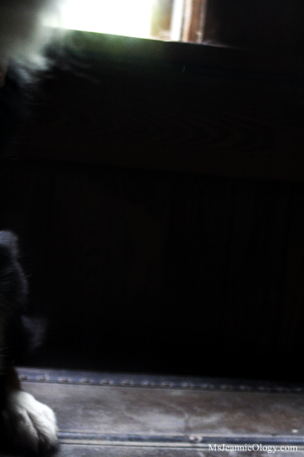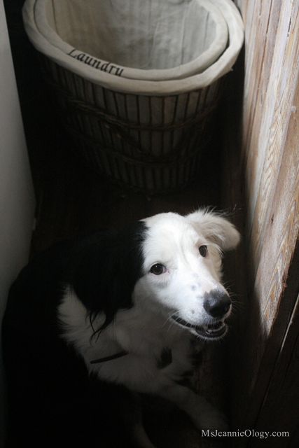 She’s figured out the best thunderstorm bunker is the laundry room…