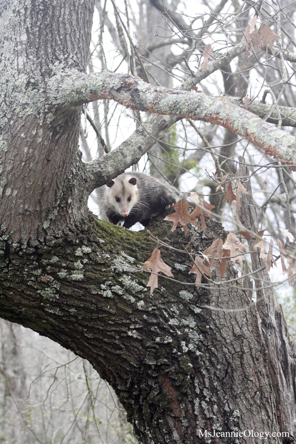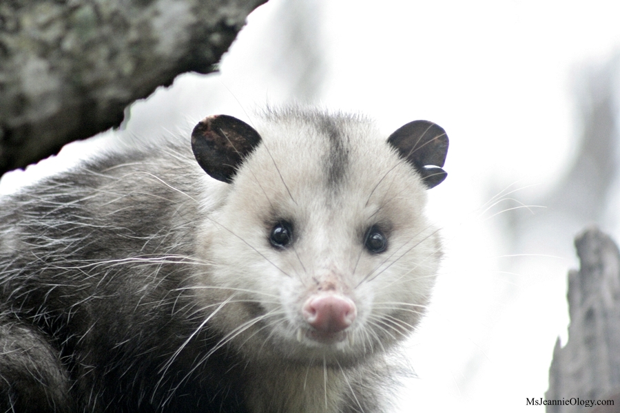 All this makes our modern day visitor quite a marvelous wonder. Preferring to scurry about in the safety of night, opposums are predominately nocturnal, but every once in a while you’ll catch one out and about in the daylight like this guy saying a happy good morning to Ms. Jeannie at 9:00am.