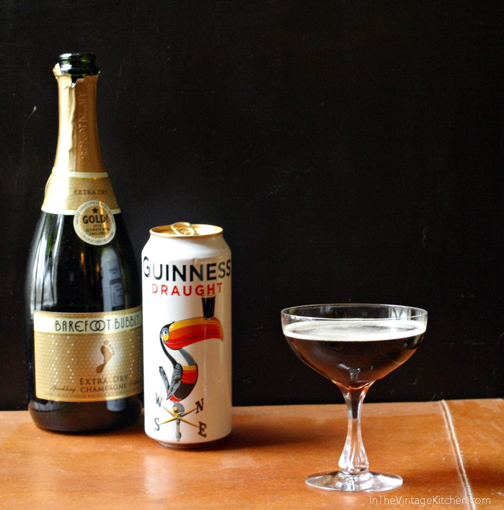 In the meantime, we are popping corks and pouring a rich dark drink that was popular on the British mid-century cocktail scene. Named the Black Velvet, it is a half and half combination of Guinness beer and extra dry champagne.
