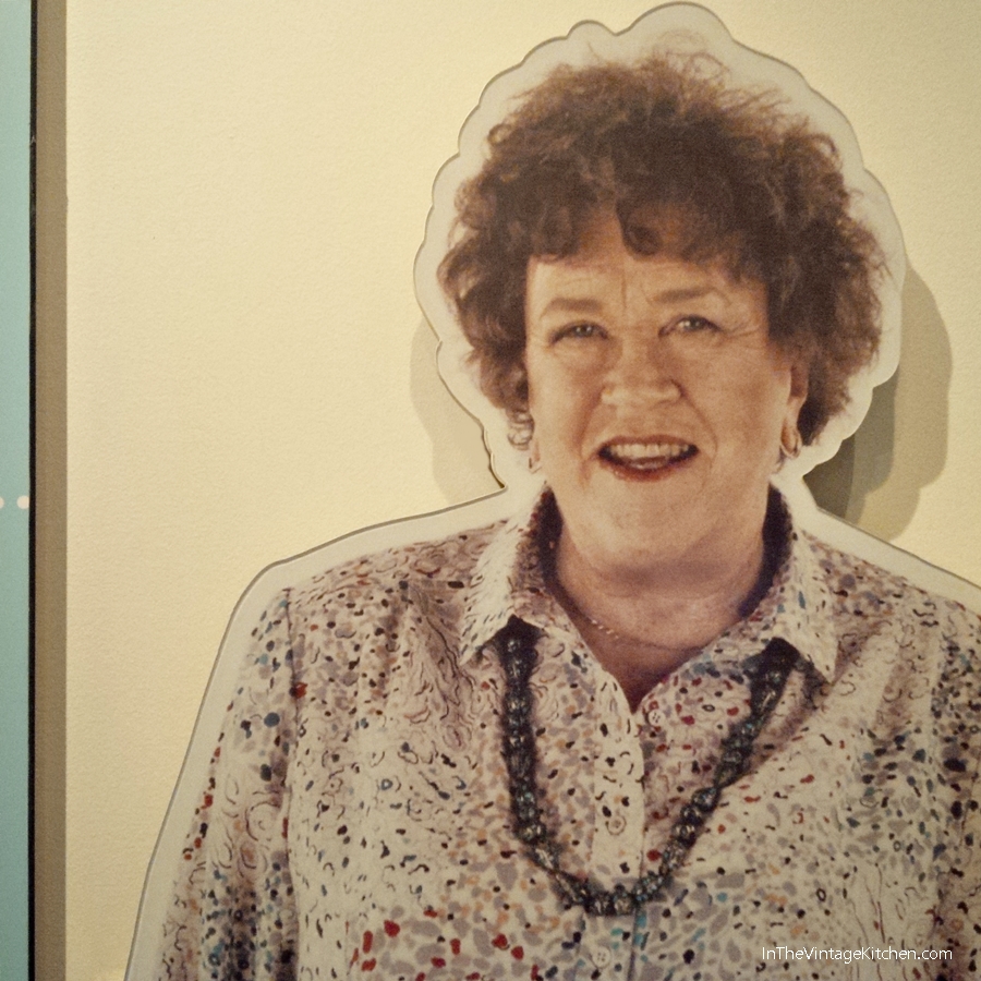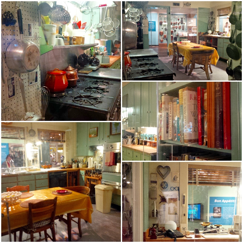 As revered as Julia had become it is easy to see in this exhibit how normal and ordinary a person she actually was. Her kitchen reflected that. It wasn’t photo-shoot ready. It wasn’t glamorous. Not everything had a place. Her cookbooks were used. Her counter tops were messy. But it was functional for the way she liked to cook. It was a fun play space for her and in turn it was a fun exhibit for me. I think that is what still makes Julia Child so admired. She was an unpretentious lover of food and of cooking and her kitchen reiterates all that. The manner in which it is displayed there at the Smithsonian you can easily imagine that she just popped over into another room of the house, perhaps to fetch something for her husband Paul and that in any second she was going to come right back and get to cooking. Aided by video monitors playing clips from her cooking shows around the exhibit, your imagination does not have to stretch far to picture her standing at the sink peeling potatoes or at the stove flipping omelettes.