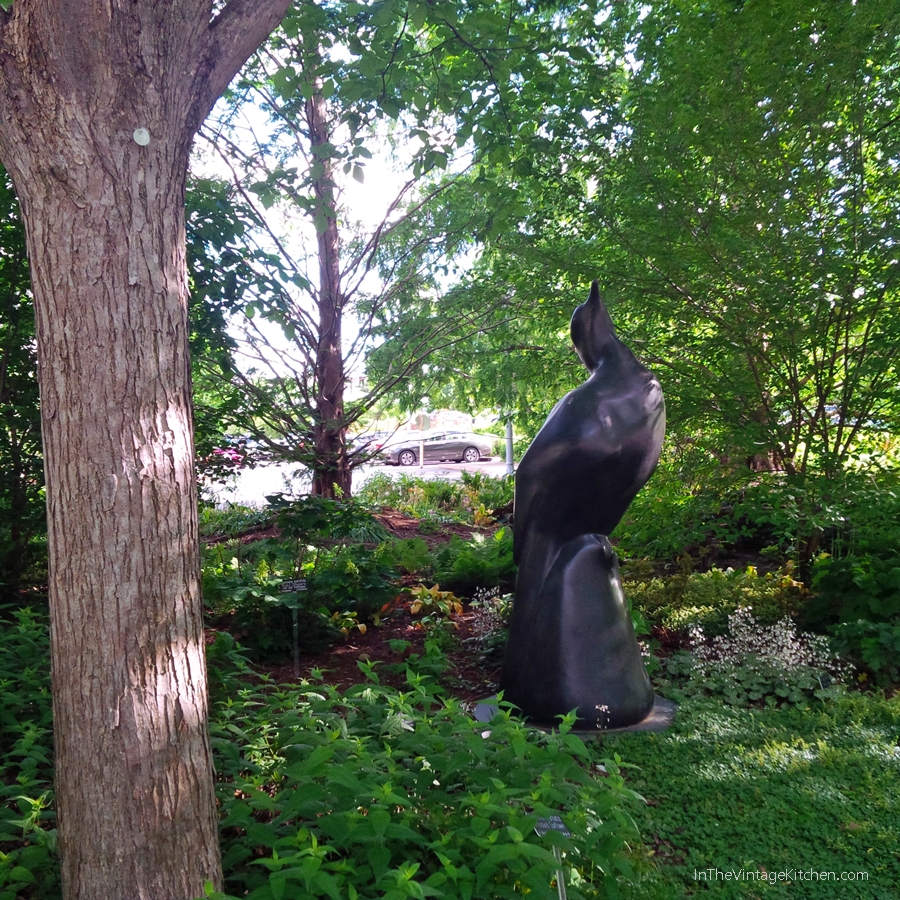 the passenger pigeon sculpture by Todd McGrain from the Lost Bird Project that we wrote about in 2013! She’s tucked inside a walled garden just off the street so I almost walked right by her. In the busy world of modern day urban life, she sits surrounded in the museum’s Bird Garden by flowers and real-life bird flocks flapping their wings here and there so she’s in a great spot. If you missed the post about the Lost Bird project and Todd’s mission to memorialize extinct birds catch up here.