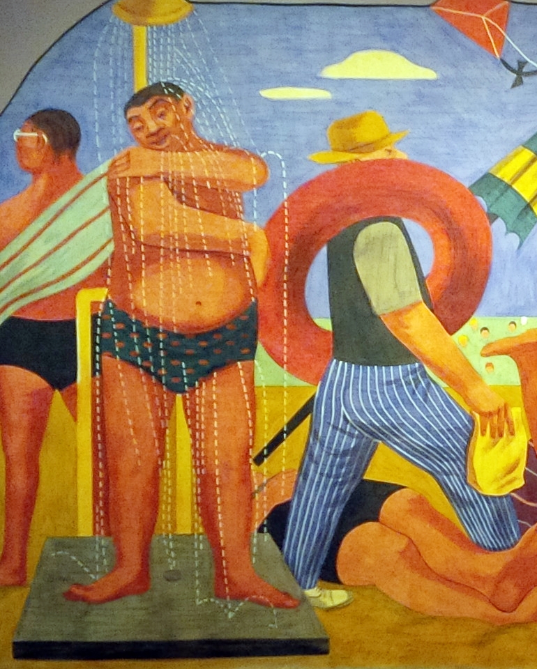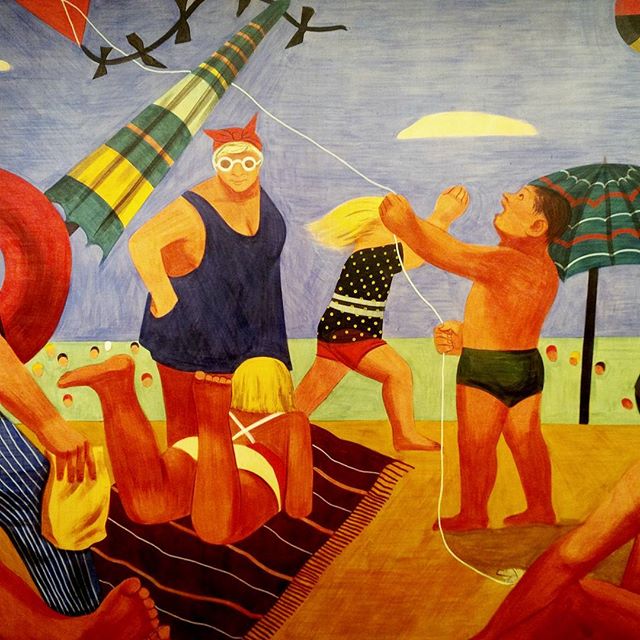 which was from a series by Gertrude Goodrich titled Scenes from American Life (Beach) and which originally hung in the cafeteria of the city’s Social Security Building. I loved the bright colors and all the commotion going on – each figure in the painting has their own personality. Here are some up close snippets..