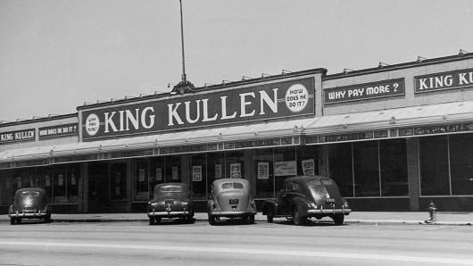 On this day – August 4th, 1930 – a giant marvel of a masterpiece was unveiled on Jamaica Avenue in Queens, New York. It involved a big building, a big parking lot and a plethora of products that extended far beyond what anyone could have imagined before. Aptly named King Kullen, it was King Kong-ish in size and scope and quickly took over an industry in a way only a behemoth of a good idea could. It was the birth of the super market – the very first large space grocery store that contained not only food items but also hardware, paint, automotive, cosmetics, shoe shine, kitchenware, confectionery and drug departments all under one roof.