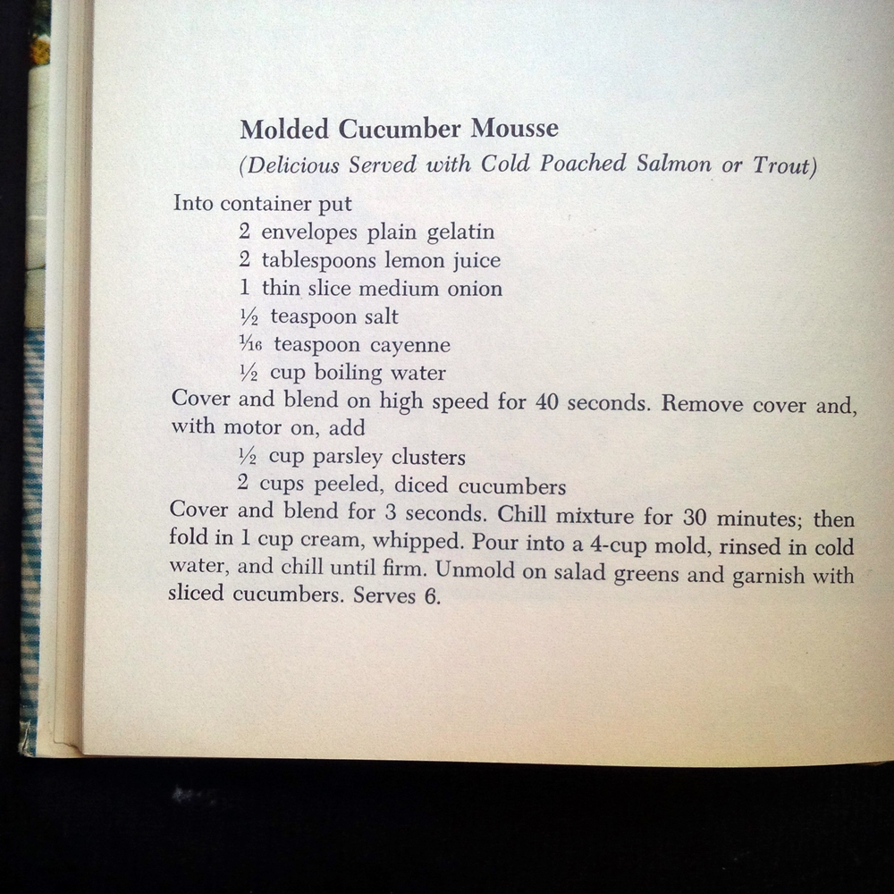 RECIPE No. 1: MOLDED CUCUMBER MOUSSE (from The Blender Cookbook, 1962)