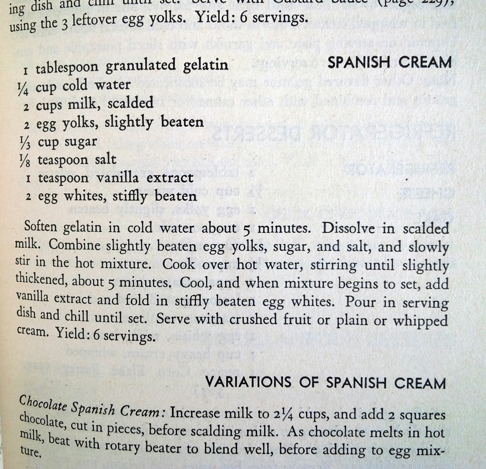 RECIPE No. 3: SPANISH CREAM (from the Silver Jubilee Super Market Cook Book, 1955)