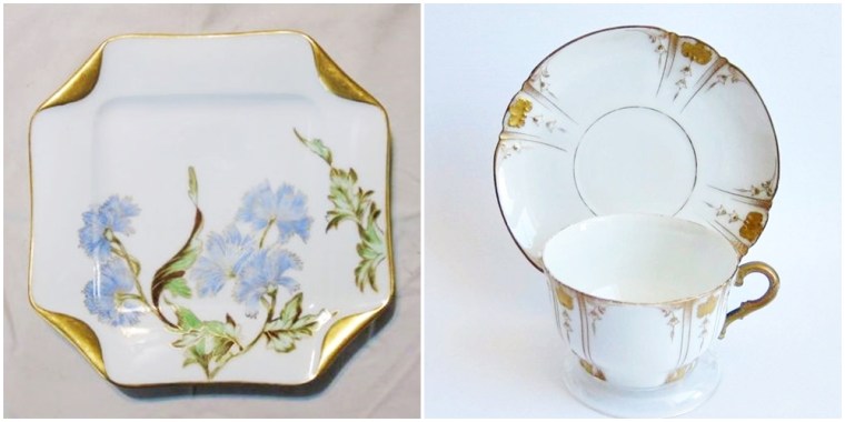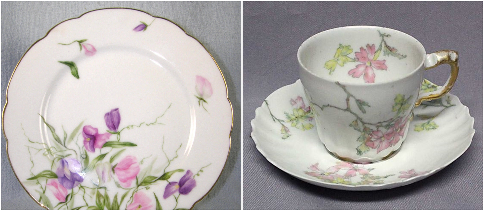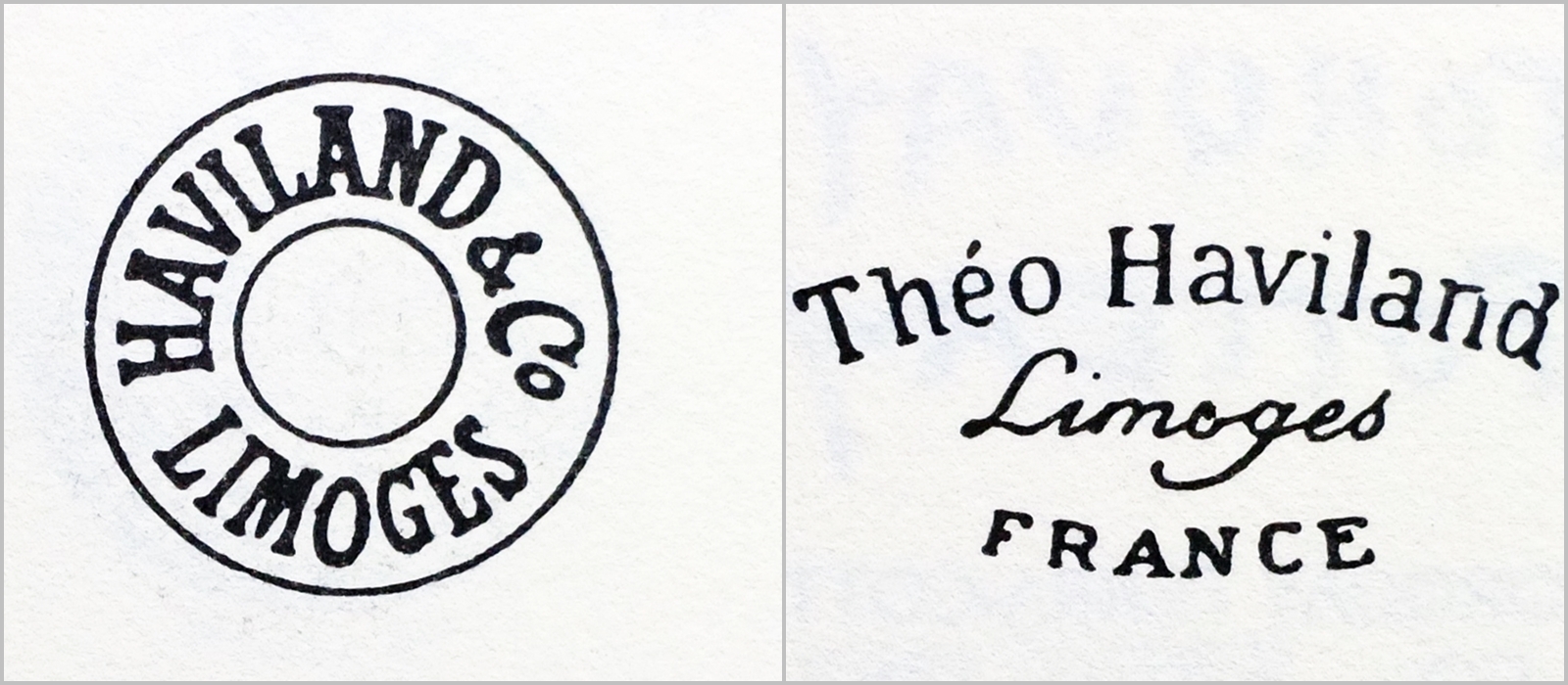 Charles Haviland china plate on the left,. Theodore Haviland cup and saucer on the right.