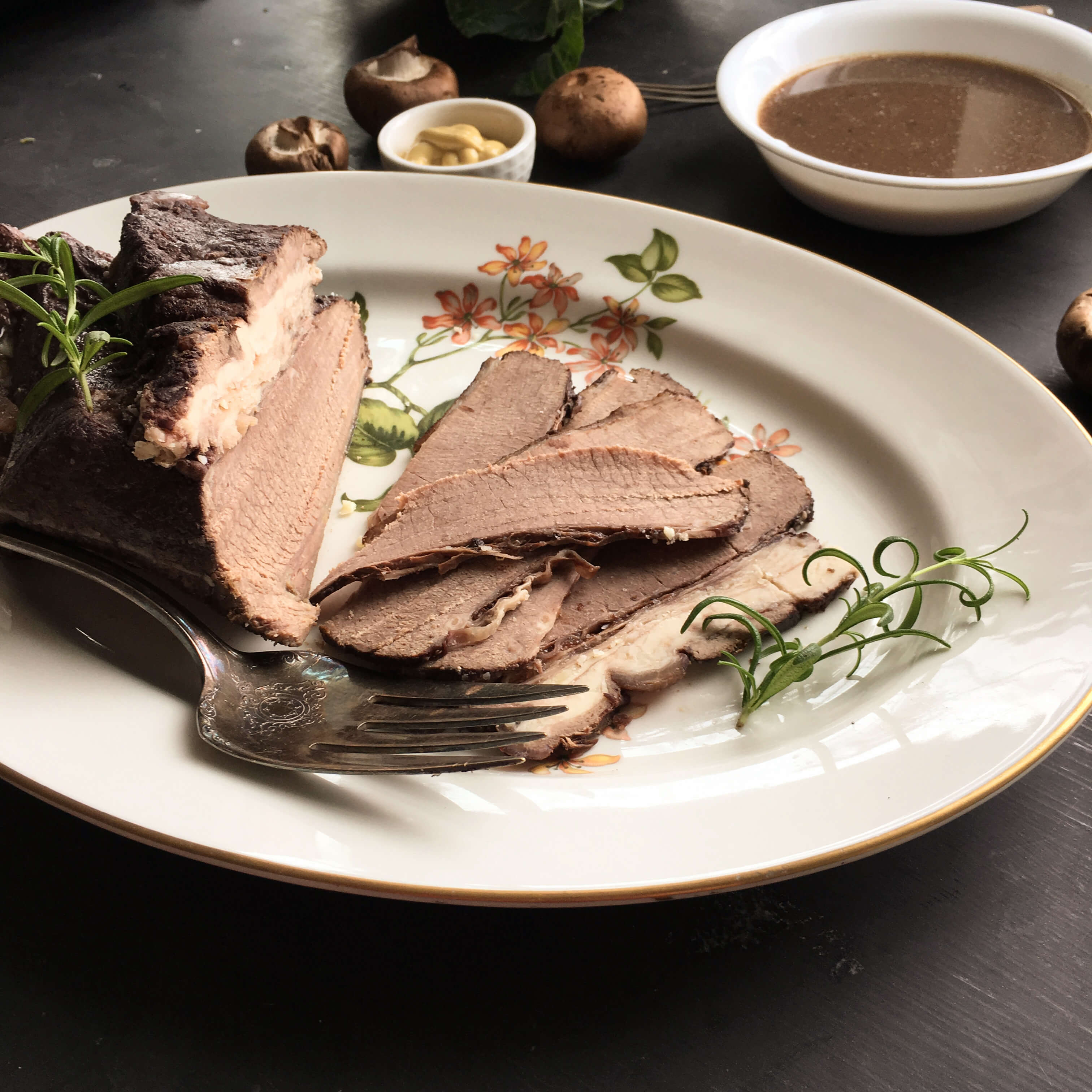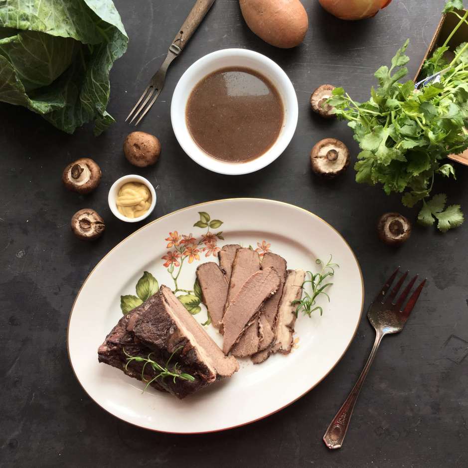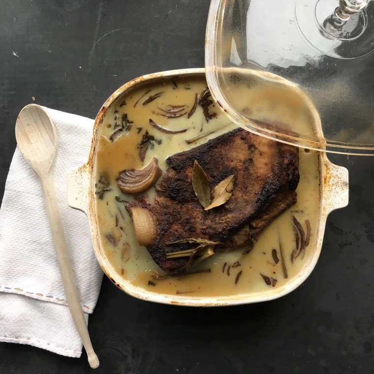 Today’s recipe focuses on the Jewish side of cooking, with a brisket that quickly browns in butter on the stovetop before heading into the oven for a slow simmer in red wine. If you are not a fan of the saltiness of traditional corned beef or are wary of the seasoning packet that comes in most store-bought brisket kits, this recipe is a great alternative, since you can control your own level of spices. It comes from Annie, an avid cook, and a world traveler who lived in New York for most of her life. A dear friend to my father, she’s proud of her Jewish heritage and is famous for many signature dishes including homemade horseradish (more on that in a future post).