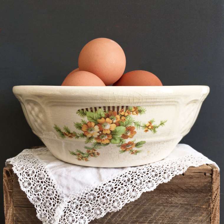 A 1936 floral kitchen bowl made by Paden City Pottery which was granted the seal of approval by the Good Housekeeping Institute…