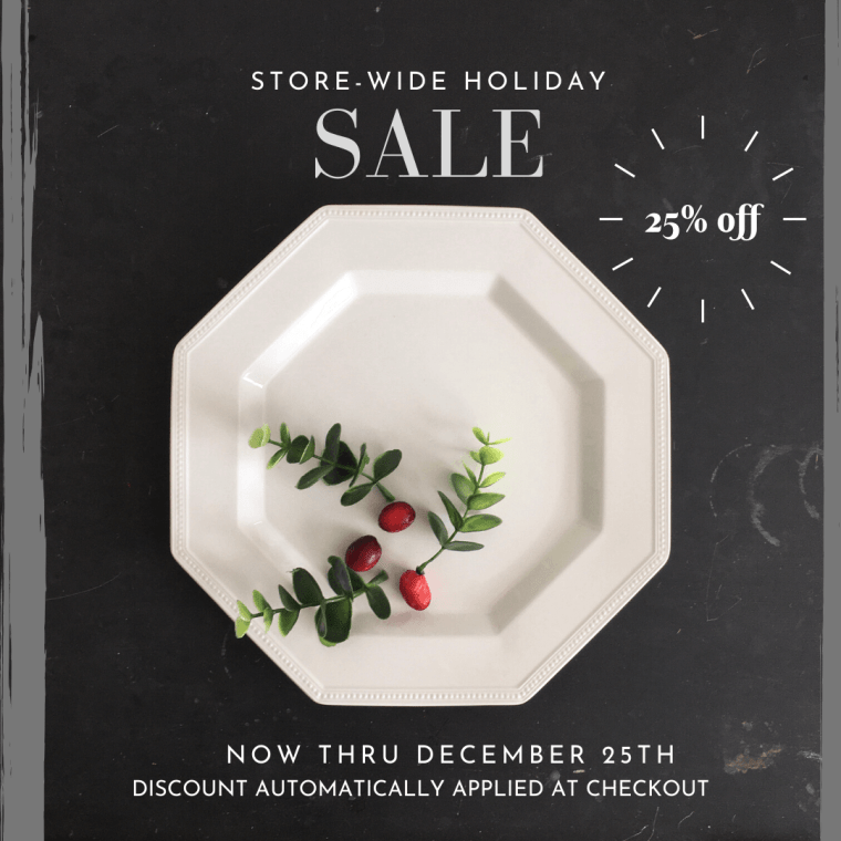 So excited to announce a very merry holiday sale in the shop! From now thru December 25th, enjoy 25% off store-wide. For the first time ever, you don’t need a coupon code as the discount will be automatically applied at checkout. Cheers to uncomplicated shopping!