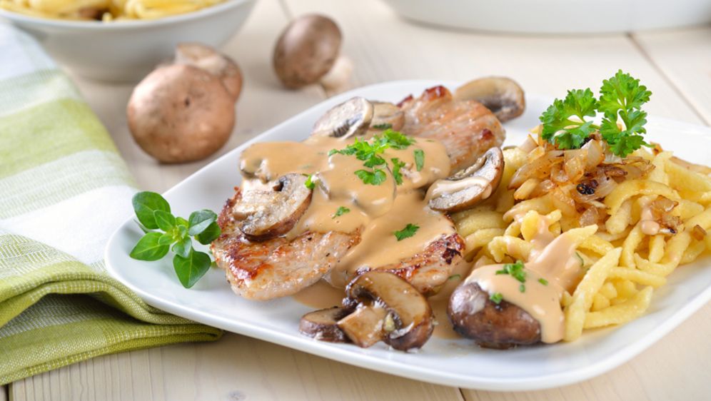 Unfortunately I’m not familiar with this specific recipe. It reminds me a little bit of “Jäger Schnitzel” (“hunters-schnitzel”). It’s either a pork or chicken schnitzel, served with spaetzle and creamy mushroom sauce.