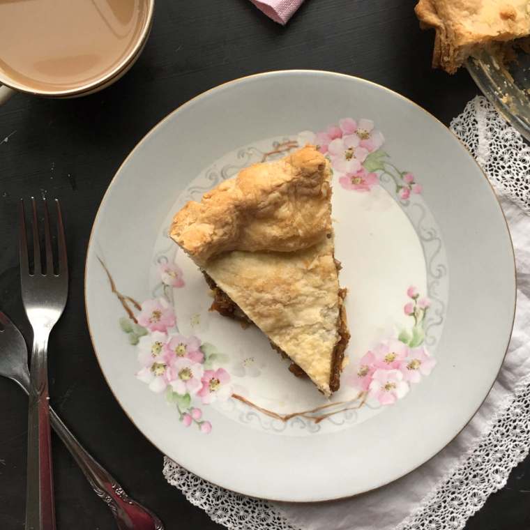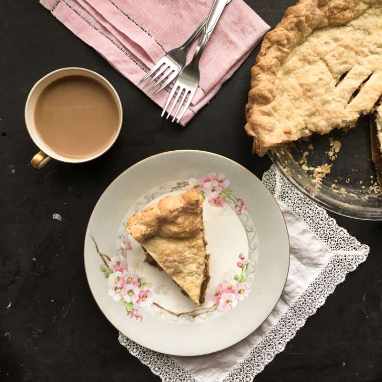 That makes the vintage recipe we are making in the Vintage Kitchen quite unusual now, since it has a traditional top and bottom crust and very few ingredients. Containing just seven in total, it is made of a collection of everyday essentials that you almost always have on hand. Because of its simplicity, it reminded me a lot of one of those homemade desserts you might whip up on the impromptu when you are craving something sweet but don’t have all the necessary ingredients on-hand to make anything remotely decadent like a chocolate layer cake or fancy cookies or a berry pie.