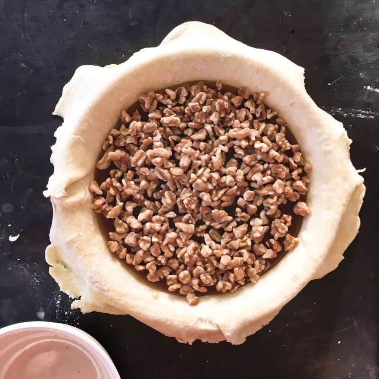 Originally at the onset of preparing this recipe, I thought the end result was going to be more creamy and caramel-like in both consistency and taste. In actuality though, it is much simpler – really just imagine walnuts drizzled in maple syrup and wrapped in pie dough and you pretty much have the general gist.