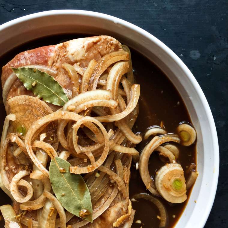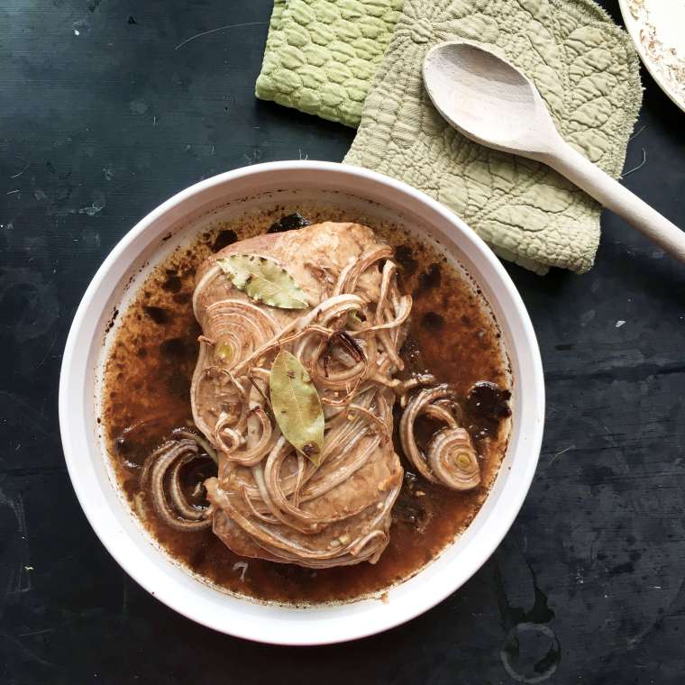 The recipe calls for a large roast 6-7 lbs., but you can also easily cut all the ingredients in half, and make a smaller 3lb version if you aren’t feeding as many people during these days of quarantine. Like Thanksgiving turkey, this makes a wonderfully delicious dinner that has all sorts of potential and possibilities when it comes to serving. I’ll talk about that in a minute, but first here’s the recipe, so that you can get to marinating already.