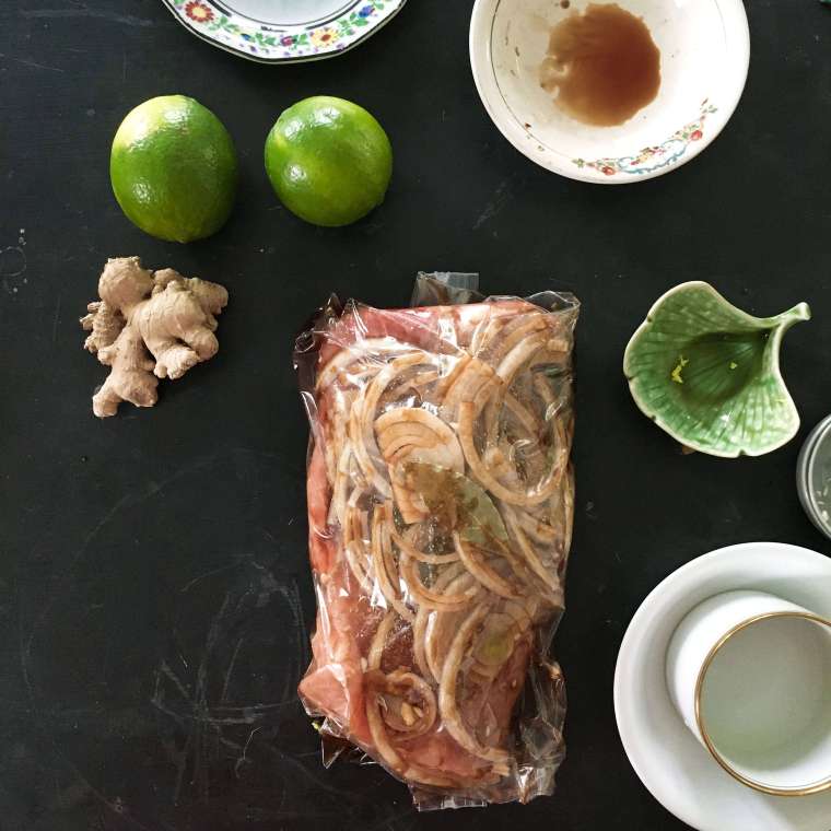 Like the growth of a fruit tree, our recipe also requires a bit of time and patience in order to be successful. With just a few basic ingredients, it’s simple to prepare but does require 15 hours from start to finish. Most of the time is spent in marinating (12 hours) in the fridge and then roasting (3-3 1/2 hours) in the oven, so it leaves plenty of opportunity to do other stuff in your life while waiting for dinner to be ready. Maybe in that time, you can start planting the seeds of your own tropical garden:)