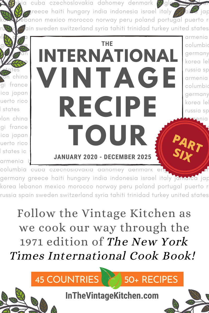 Next week, we’ll officially be one forth of the way through our Recipe Tour, as we hit the three month mark! Join us for Week 12, next Wednesday when we visit Czechoslovakia via the kitchen! In the meantime, keep your chin up and stay healthy please.