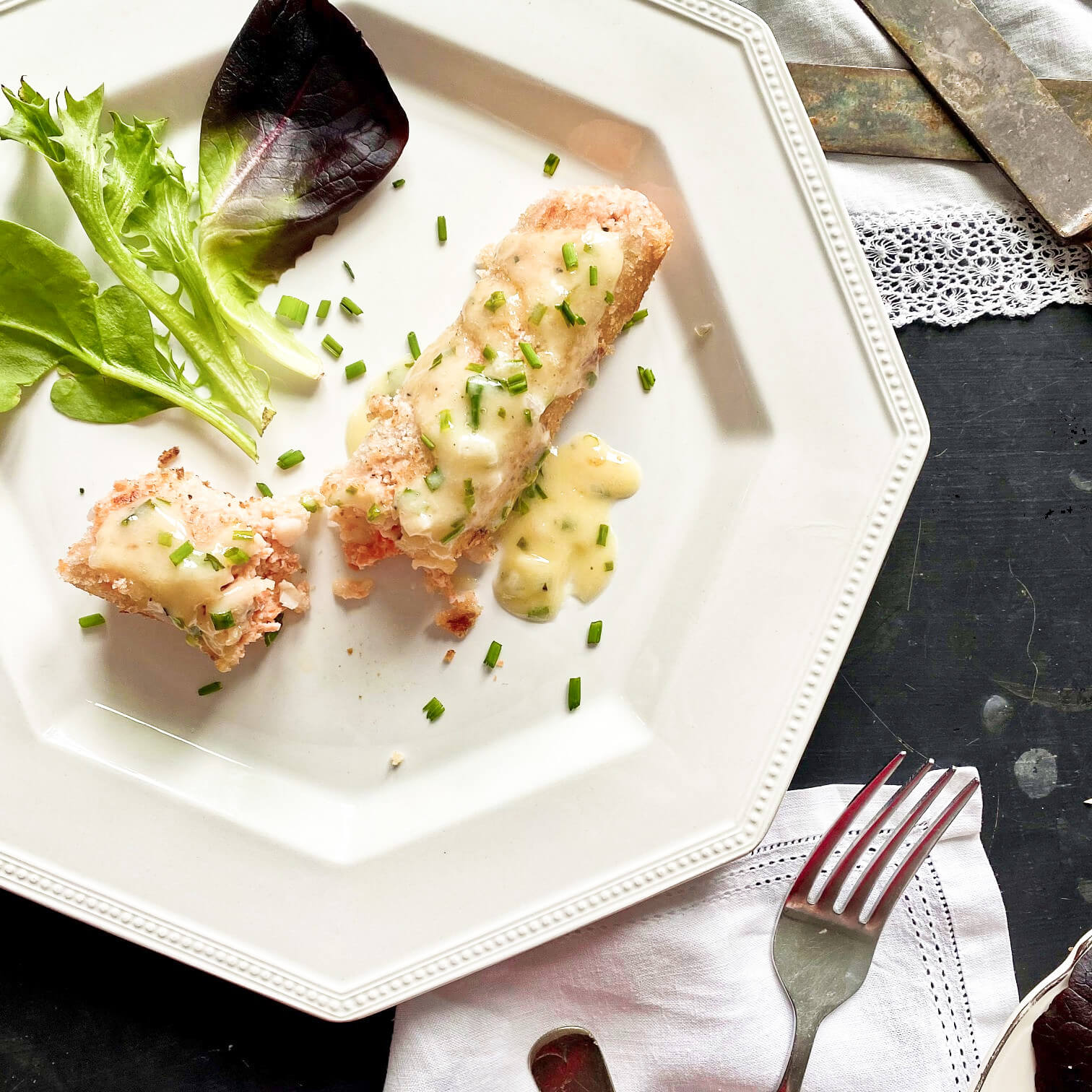Seafood Sausages with Chive Sauce