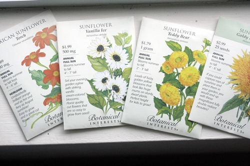 If you are looking to grow your own sunflowers, I recommend seeds from Botanical Interests. They are not a sponsor of the blog or affiliated with the Vintage Kitchen in any way, other than being my most favorite seed company. That is a love affair that has been going for over 10 years now! Their seeds always have a great success rate, they offer many heirloom varieties and the packages are really pretty and informative too. Browse their sunflower collection here.
