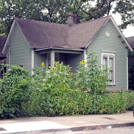 Tall enough to offer shade to smaller plants, sturdy enough to act as borders for visual interest, and easy enough to grow in almost any type of soil, sunflowers are equally at home both in the city and the country. In our neighborhood, this city cottage grows them so tall every year they almost reach the roof…