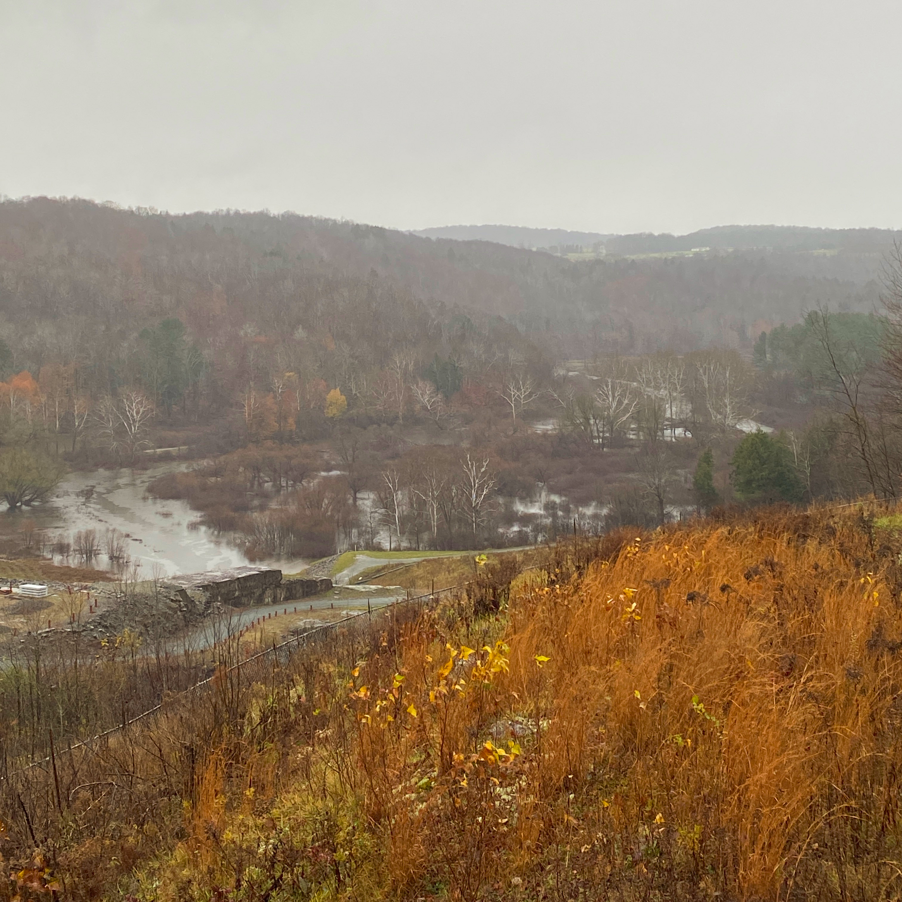 I can totally understand the appeal. The rolling hills, the dense pockets of trees and the waterways that wind and weave their way practically around every corner are a paradise for nature lovers of all ages. Even in the off-season on a November day like yesterday, when it was 42 degrees and raining, there was a sense of refreshing exhilaration in the landscape. It might have been the exciting news that snow flurries were in the forecast for part of the day or the fact that its been half a dozen years since I’ve been surrounded by so much nature, but whatever the joy that has buoyed our spirits these days, this part of the state has turned out to be quite unexpectedly enchanting.