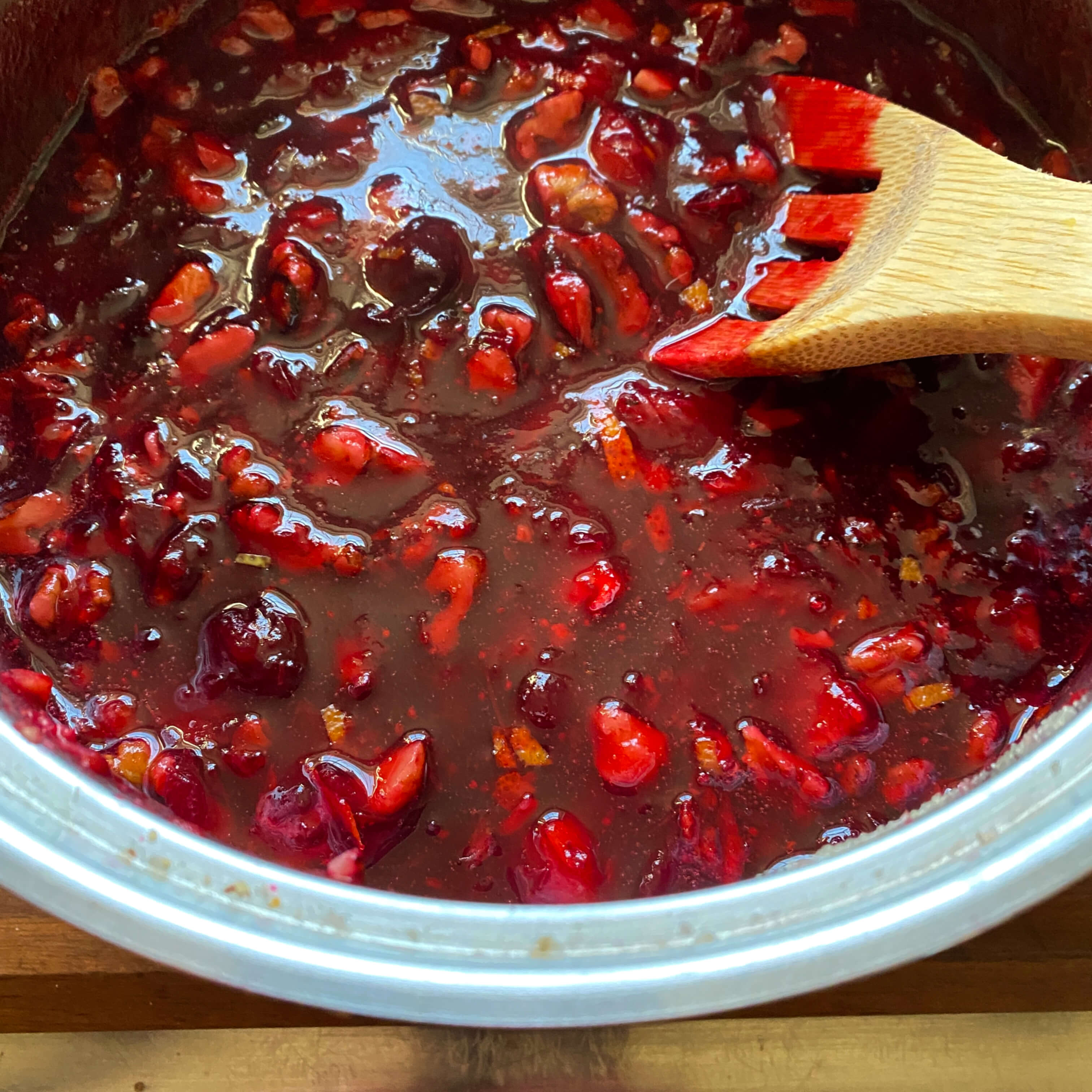 First, we will look at the cooking method and then we’ll dive into the number of different ways to serve this version of cranberry relish. You’ll notice at the end, that this recipe offers a canning suggestion for storage but we just made one big batch and stored it in the fridge where it lasted for over a week and a half.