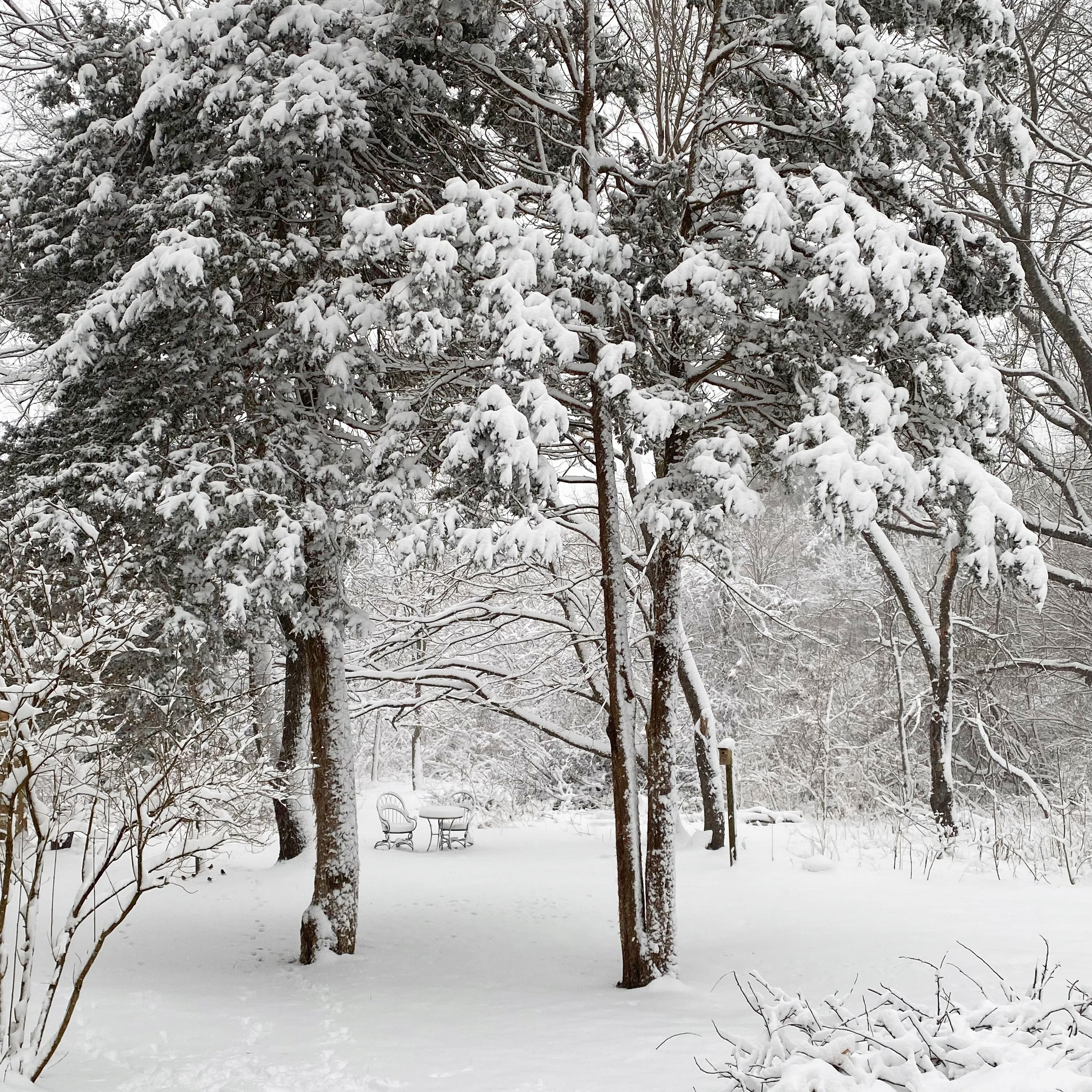 Surrounded by woodlands on two sides and facing a community garden in front, 1750 House is tucked in between acres of beautiful naturally-kept trees, including five elms and two cedars that are over 100 years old. While we have no shortage of very tall trees, we do have a bit of haphazard mid-range tree coverage that reflects over 270 years of garden endeavors executed by previous 1750 House residents. Privet, fruit trees, ornamental shrubs, wild natives, ornamental grasses and a few invasive species all compete for attention to the eye. We are on a mission to corral all these growers into a more cohesive vista so that they can work together to provide interesting layers at different heights to create a unique blend of shapes and colors throughout the year.