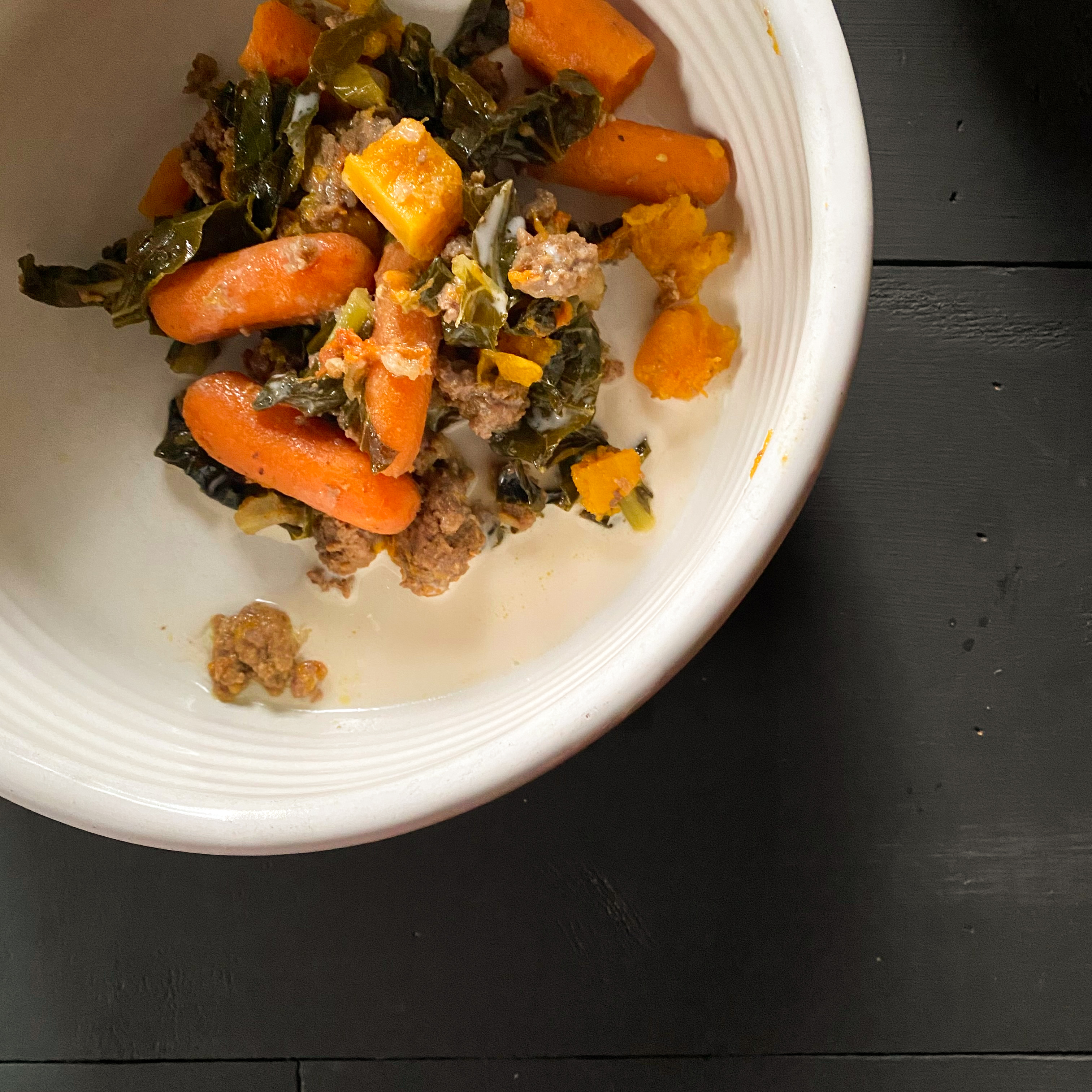 Canned mackerel good. Canned tuna better. Collards great. Black beans no thank you. Chicken okay. Fresh salmon best. Cherry tomatoes from the garden good. Green beans from the grocery store bad. Avocado good. Split peas great. Oatmeal bad. Quinoa yes! Finally, we arrived at a handful of reliable new recipes that left her bowl spotless after each meal just like in the before times. I was getting ready to share two of these new recipes here on the blog this month because she loved them so much. One was a grass-fed beef stew that swam in a puddle of unsweetened coconut milk and the other was a batch of chicken meatballs stuffed with quinoa, herbs, and sweet potatoes.