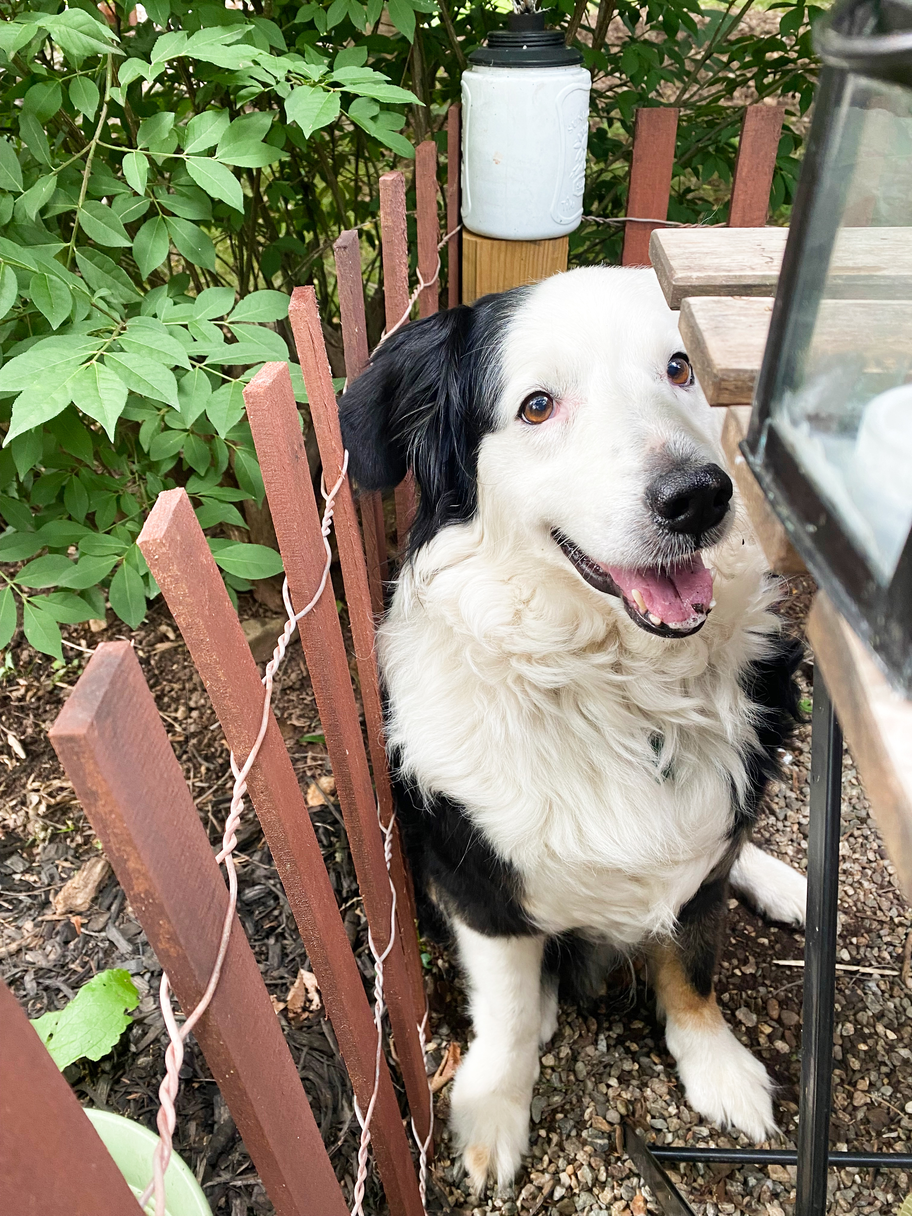 In addition to the walks and her birthday celebration, we did a variety of other things with her over the summer too. We included as many of her favorites as her big heart would allow. There were trips to our local Dairy Serv for vanilla ice cream. There were pup cup runs to Starbucks. There were endless bowls of ice-cold water at our favorite outdoor pizza spot. There were Sunday drives, picnics in the grass, naps in the hammock, and late-night grill dinners on the patio. She spent time with me in the garden, with my husband in the workshop, and with her favorite tree in the yard.