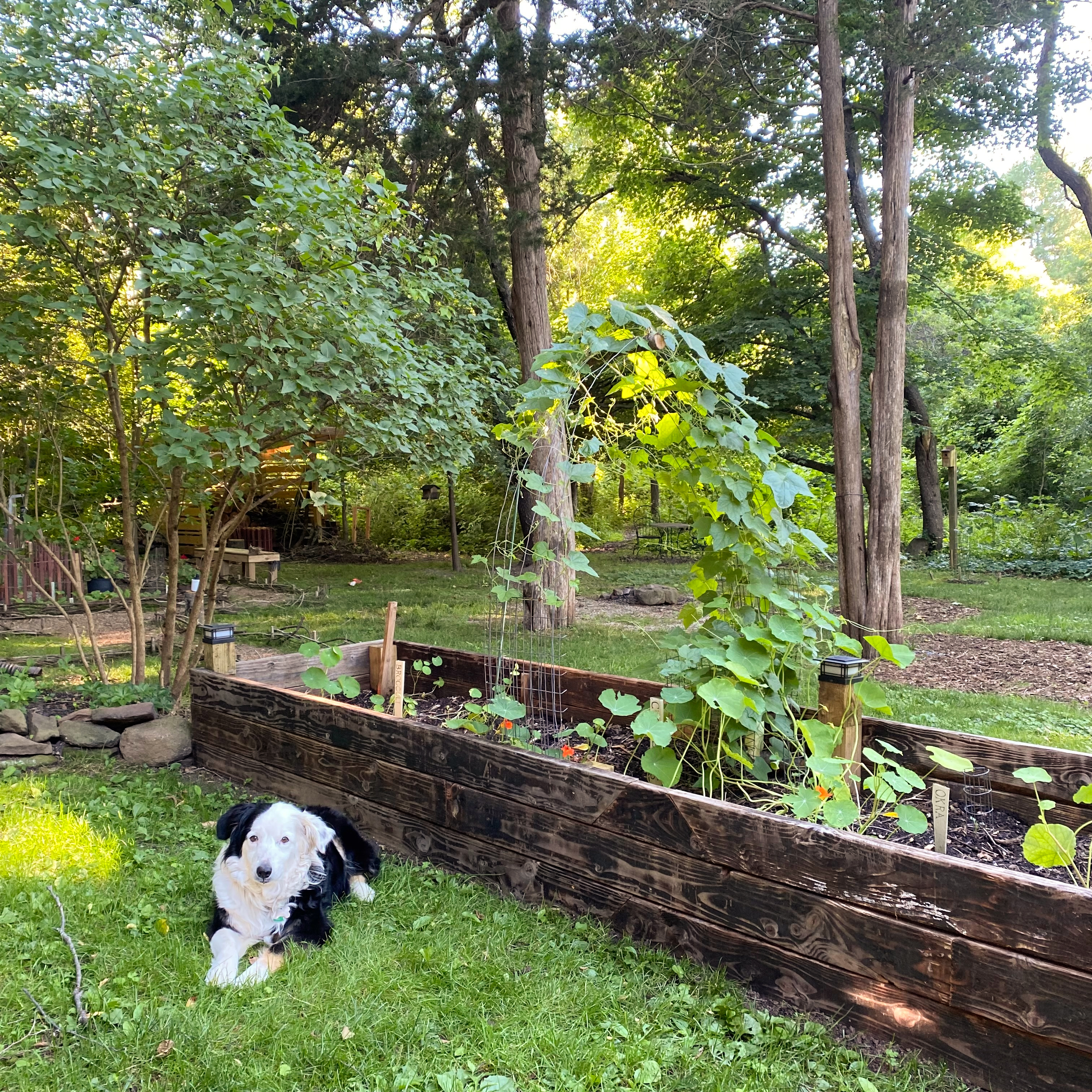 Flash forward 10 years later to this 4th of July, Indie was still just as happy to be spending time with us and our grill. We celebrated her 2024 birthday with grass-fed beef burgers, strawberry goat cheese bruschetta, and an outdoor dinner at the greenhouse.