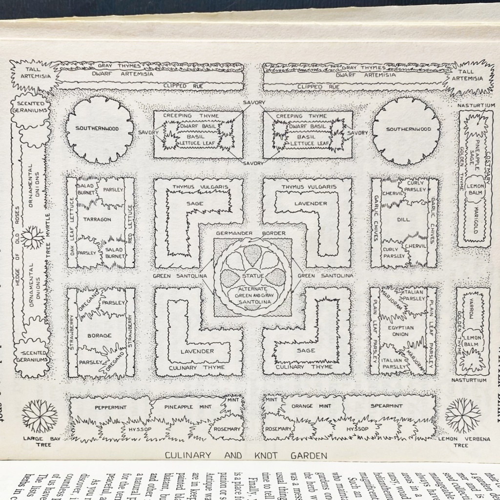 In Herb Gardening in Five Seasons, Adelma also offered a variety of her own designs specifically tailored to herb gardens. There were eight in total, each ranging in theme and aesthetic. Had I the space and the sunlight, I would have replicated this one exactly…