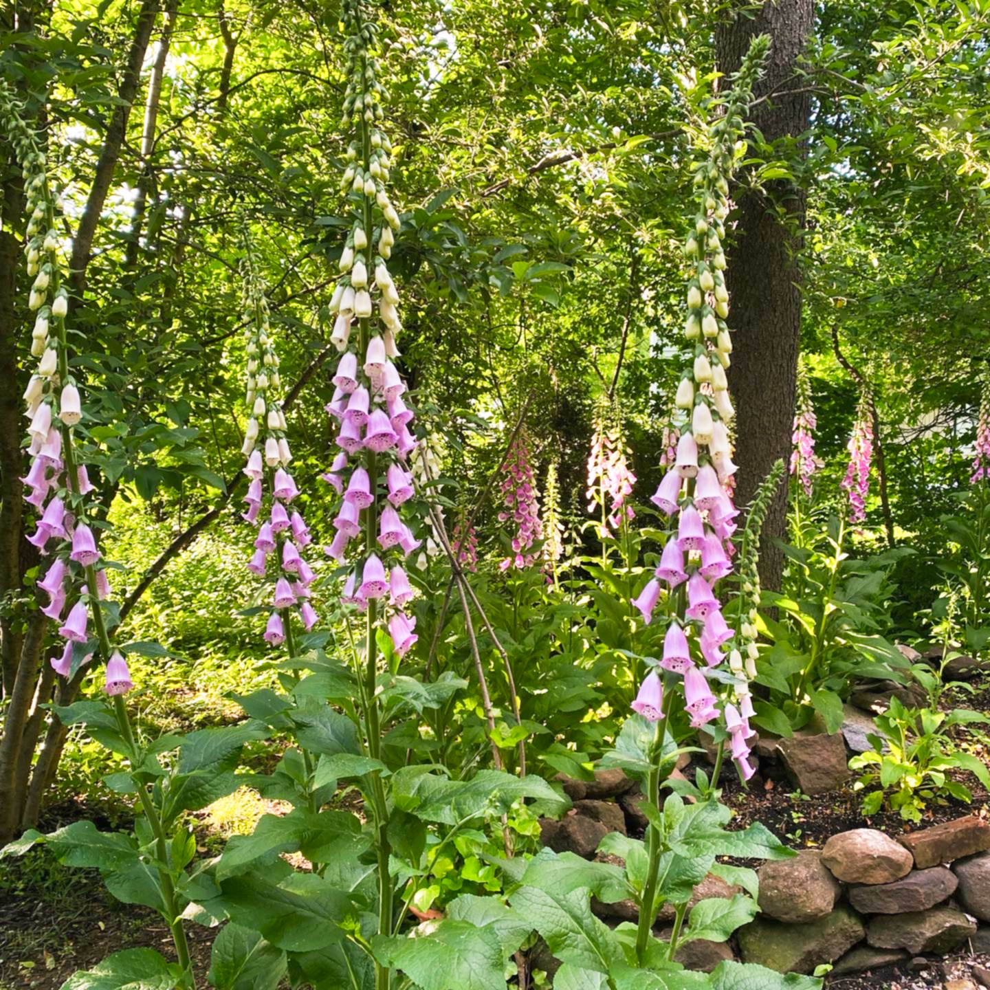 Luckily though, as an experimental year, I planted herbs in several places around the garden, not just the greenhouse, so that we could see in which areas they grew best with varying lights of shade vs. sun. The reliable foxgloves in the front bed of the greenhouse grew to 5 feet and bloomed in shades of pink, purple, and white.
