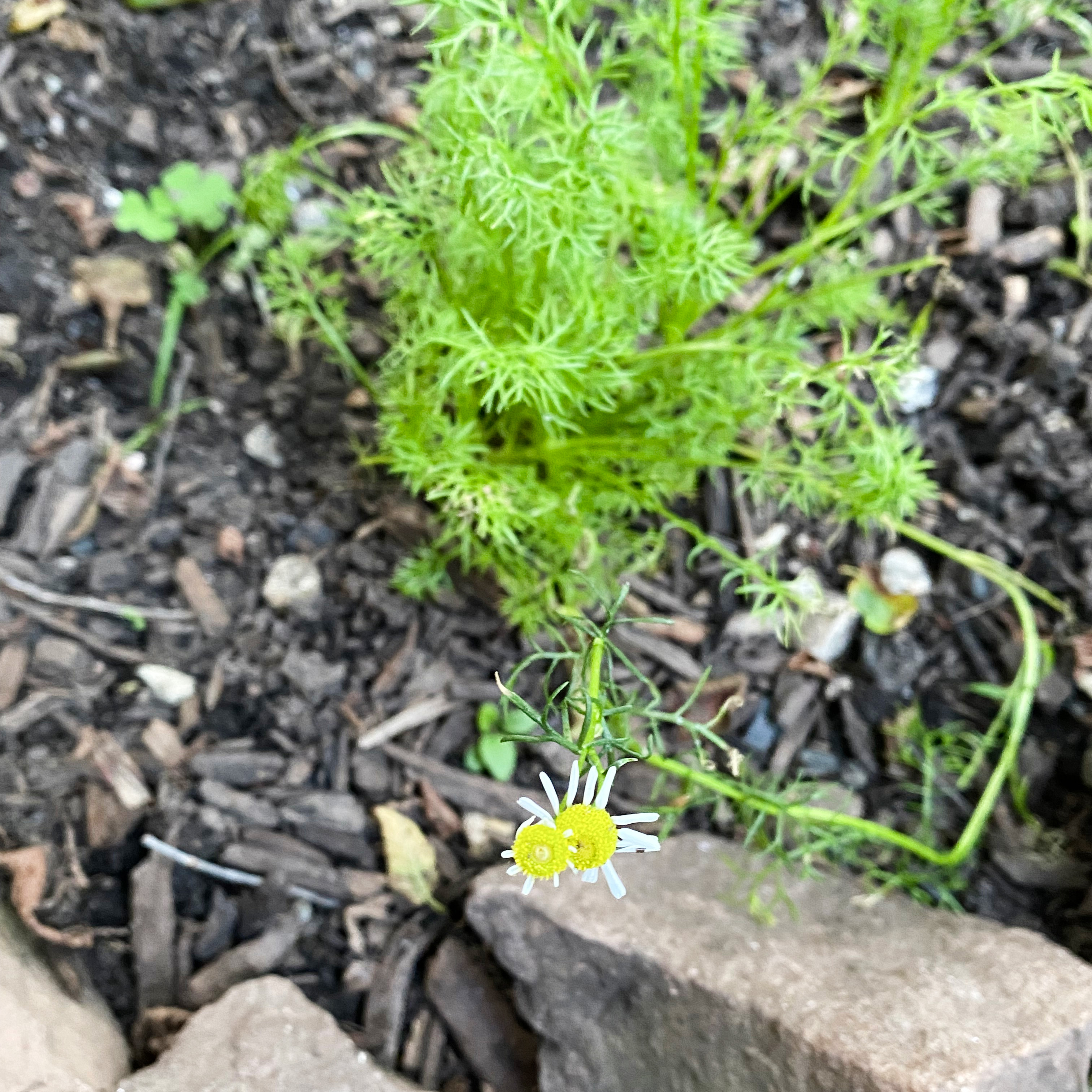 Although this photo above was taken in late June, the plants never really got much bigger than this over the next 60 days. Each formed their own little clump, but never branched out enough for one to meet the other, which was my initial idea in order to create a full garden. The mystery pest got the best of the herbs on the far edges of this bed too… the echinacea, the bergamot, the chives, and the chervil, but left the lemon balm, the oregano, and the feverfew alone. As an herb that symbolizes protection and new beginnings, I immediately loved the fortitude of the feverfew. Planted all around our pup Indie’s headstone, as a way to safeguard her spirit and to mark a new chapter, it was encouraging to see that it was now protecting the neighboring herbs too.